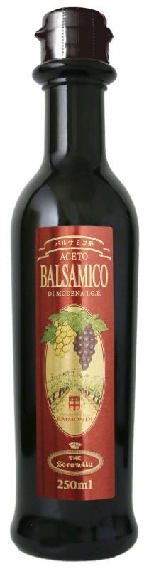 北イタリア・モデナ地方のライモンディ一家が大切に育てたぶどうを濃縮し、同じぶどうから作った香り高いワインビネガーを加えオーク樽の中で熟成させた味わい深く風味豊かなバルサミコ酢です。この他に業務用サイズや使いきりサイズのポーションパックタイプもございます。
