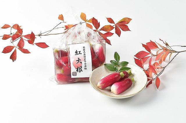 紅大根 箱根西麓野菜の新名産品、紅白の二十大根を和風だしで漬け込みました。 素材の風味を活かした紅大根は「漬物の宝石」として、彩り豊かで味わい深い逸品です。 【商品の分類】 漬物・佃煮/漬物 【内容量】 100g 【保存温度帯】 冷蔵 【賞味期限】 製造日から7日 【消費期限】 D+7日 【業務用・小売用】 小売用 【希望する販路先】 百貨店 スーパー 上質スーパー 生協 食品・酒類卸(国内) レストラン・カフェ ホテル・旅館 【希望小売価格】 450円(税抜)