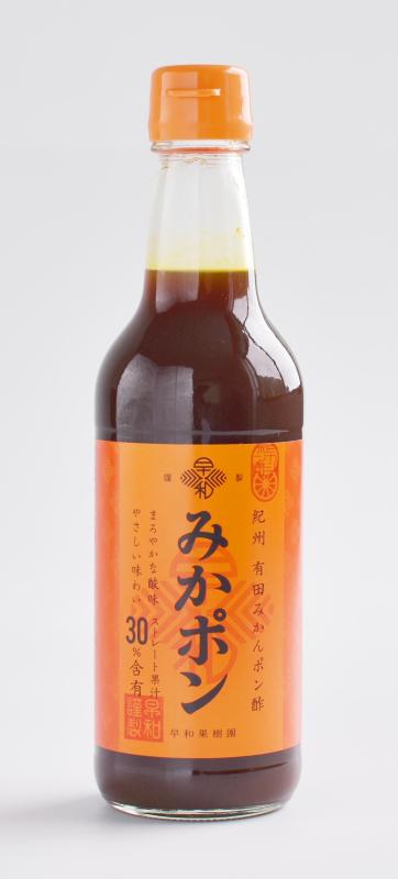 みかポン 有田みかんをベースとし、ゆず、橙、黄金柑の4種の柑橘果汁をブレンド、合計30%のストレート果汁を使用する事でまろやかな酸味が特徴のポン酢に仕上げております。 【商品の分類】 調味料/食酢 【内容量】 360ml 【保存温度帯】 常温 【賞味期限】 製造日から365日 【業務用・小売用】 小売用 【希望する販路先】 百貨店 スーパー 上質スーパー 生協 食品・酒類卸(国内) 業務用卸 【希望小売価格】 547円(税抜)