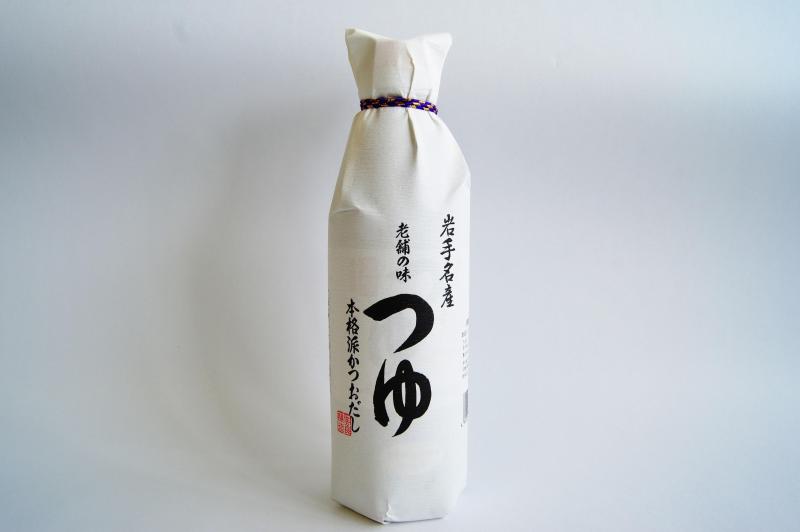 たっぷりのかつお節でダシを取り、長期熟成させた醤油とブレンドした4倍濃縮つゆ。化学調味料、アルコール不使用。ナチュラル・ミネラルウオーターの早池峰霊水を仕込み水として使用しています。 復興庁が主催する食を発掘するコンテスト「世界にも通用する究極のお土産10選」にて496品の応募の中から、大手小売企業のバイヤーらによる一次審査、全国に流通販路を持つプロ10人による最終審査を通過し、10品の中に選定されました。 複数の著名人にも愛用されている人気商品です。