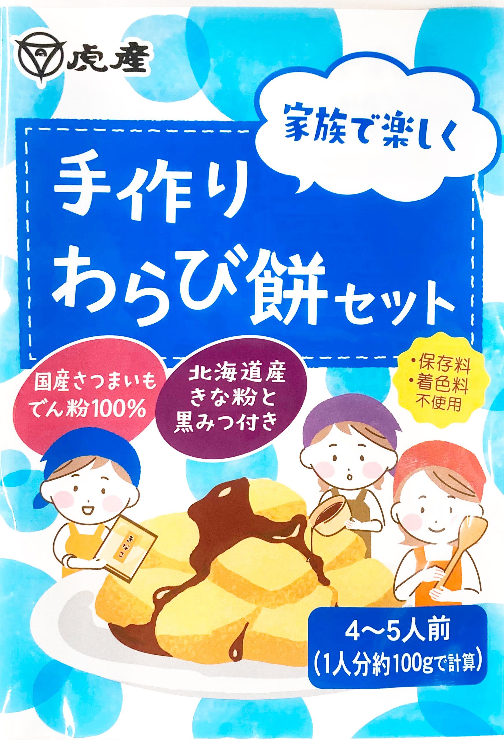 手作りわらび餅セット 国内産のさつまいもから作ったさつまいもでん粉に黒蜜ときな粉をセットにした、手作りキットです。本品でたっぷり5人前のわらび餅が作れます。 【商品の分類】 ホームメイキング材料/その他ホームメーキング材料 【内容量】 170g 【保存温度帯】 常温 【賞味期限】 製造日から300日 【業務用・小売用】 小売用 【希望する販路先】 百貨店 スーパー 上質スーパー 生協 その他小売 食品・酒類卸(国内) その他食品商社 食品を扱う通販 【希望小売価格】 オープン価格