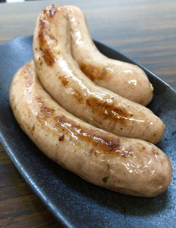 元々はドイツのニュルンベルグ市内で作られている小型ソーセージにアレンジを加え、大ぶりのソーセージに仕上げました。マジョラムという香草で味付けされているのが特徴です。ケーシングにはよくある豚腸ではなく、茹で調理でも皮残りのしづらい羊腸を使った歯触りの良い仕上がりです。