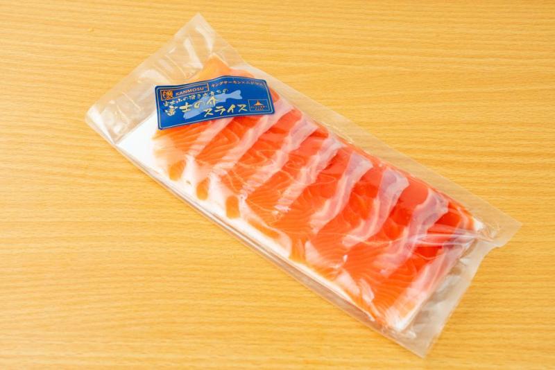 海鮮生ハムの食感は、低温用ソミュール液に一晩漬け、塩抜きをしてから低温乾燥と行い長時間の低温燻製を行い初めてフレッシュ食感が生まれます。 庫内温度と魚体の芯温を安定させ、乾燥と燻製を行いますので、安定した味と食感が出る製品です。厚めのスライスにより食感を重視し、スモークサーモンの 本来の味と食感が出る製品に仕上げました。 富士の介本来の味と食感をご堪能ください。