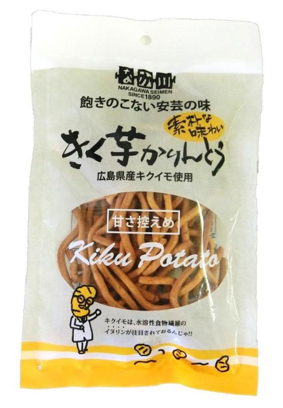 弊社は広島県で麺づくりを続けて78年目の会社になります。今回ご紹介させていただくのは熟成半生麺シリーズで、賞味期限120日の常温商品になります。小麦粉は高品位の一等粉を使用し、一昼夜じっくりと冷風乾燥させて製造しています。調理の際は別湯で不要なのでお鍋ひとつで簡単に本格的な麺が味わえます。その他にも、国産菊芋を使用した「きく芋」かりんとうなど揚げ菓子もご紹介させていただきます。