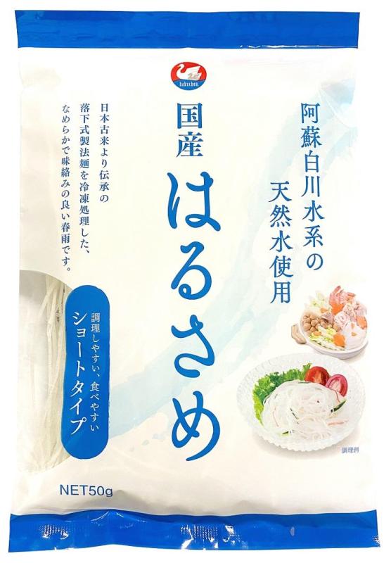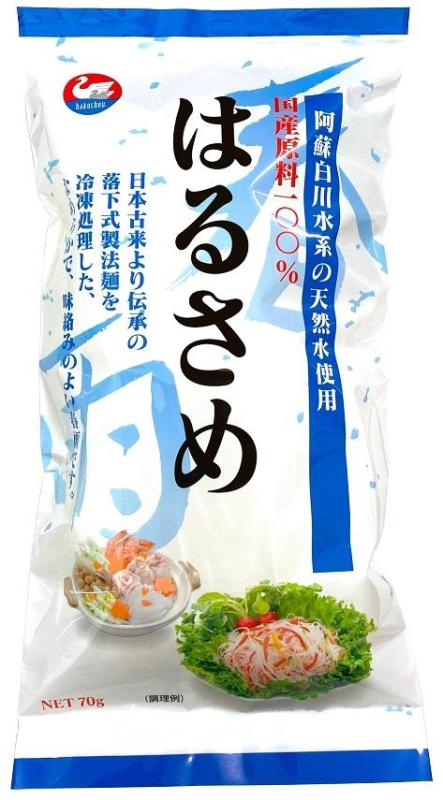はるさめの製造は、中国から伝来した製法である落下式製法を伝承しています。 さらに冷凍、乾燥させることで、味がしみ込みやすく、のど越しの良い食感を実現します。 使用原料は国産澱粉にこだわり、品質の安定化を図っています。