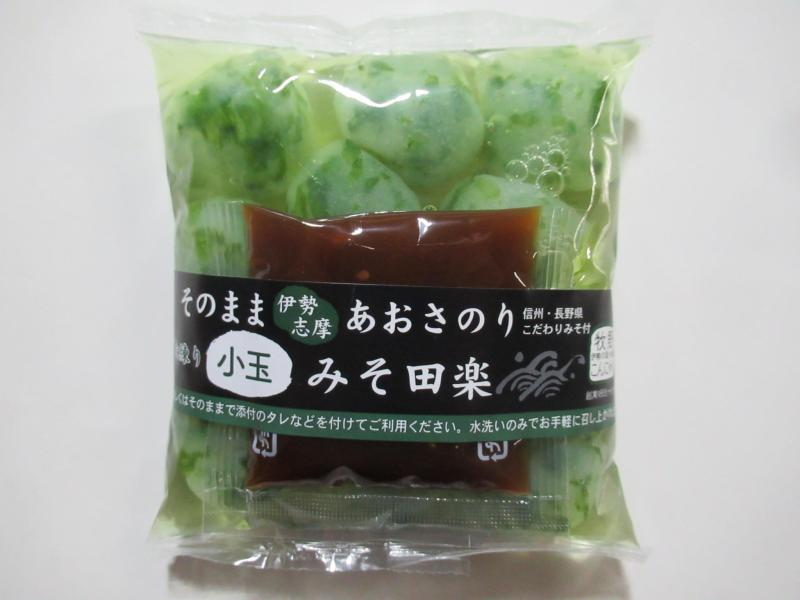 伊勢志摩あおさのりをそのまま使用し、外観・風味・味わいなど素材感たっぷりです。また伝統的製法「ばた練り」と独自の成型製法で、弾力感がありながらも歯切れの良い独特の食感に仕上げました。形状も可愛らしい一口サイズの小玉タイプなのでカットの手間も要りません。長野県・信州の田楽みそ付です。SDGsに配慮して添付たれをラベルで巻き付けることにより余分なゴミを出さないようにしています。類似商品として、春夏向けの「伊勢志摩あおさのり小玉冷やしみそ田楽」というパッケージ違いの商品もあります。