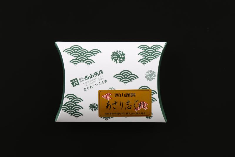 カテゴリー その他加工食品 惣菜類 出展商品 青さのり のりつくだ煮 あさり志ぐれ 明治より商いを続けられており当代で五代目となる西山商店です。佃煮製造業をその発端として三代目より産地乾海苔問屋(さんちほしのりどんや)も営んでおります。 一時には途切れそうになった佃煮製造業を、コロナ下において低迷した業績回復のための起爆剤とするべく新工場を起ち上げ販路拡大を模索しております。 産地乾海苔問屋としての優位性と伝統の佃煮製造方法をもって他社様では実現のむつかしい高品質な商品を提供できればと考えております。