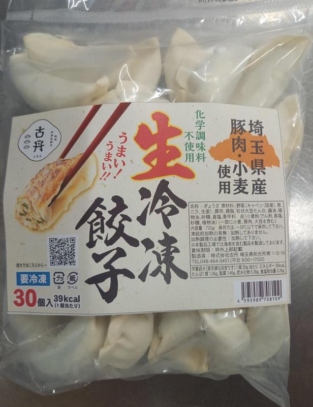 埼玉県産の素材で作った生冷凍餃子です。餃子の美味しさの要となる豚肉は埼玉県産のものを使用し、挽いた肉はすぐに真空状態にして一晩以上寝かせたのち、他の具材と練り合わせます。皮に使用する小麦には埼玉県産小麦の『あやひかり』を弊社独自の配合でブレンドしました。モチモチで化学調味料なのに旨味たっぷりの餃子です。