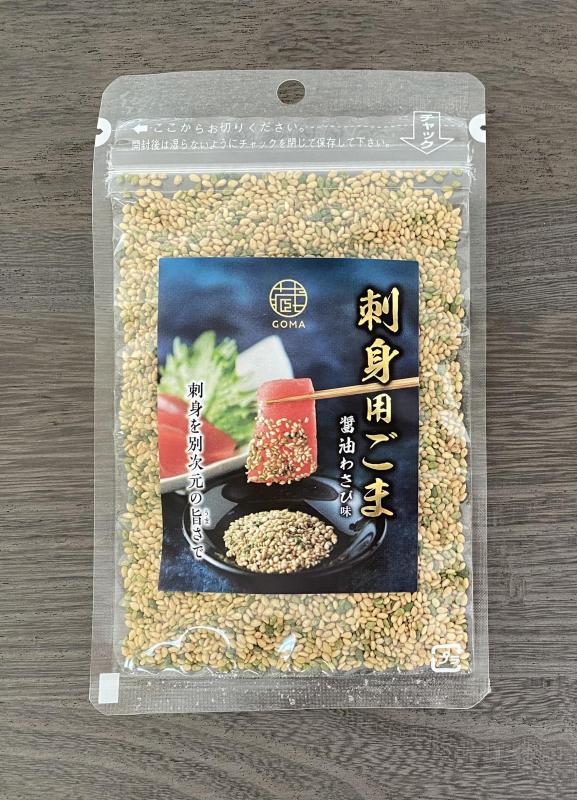 瑞々しいお刺身に粒々の乾いた胡麻がよく絡み、お刺身を別次元の旨さで食べていただくことができます。醤油味とワサビ味の胡麻を効果的にブレンドしてあります。創業明治2年、150年続く老舗の醤油で味付けすることによりとても美味な醤油胡麻が出来上がり、「刺身用ごま」の開発に繋がりました。