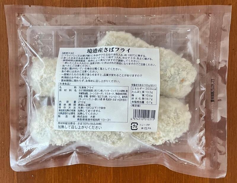 鳥取県境港で水揚げされたサバを使用しています。特徴としては、マスタード調味液に漬け、魚臭さをマスキングし、ひと手間加えて食べやすい、さばフライに仕上げました。