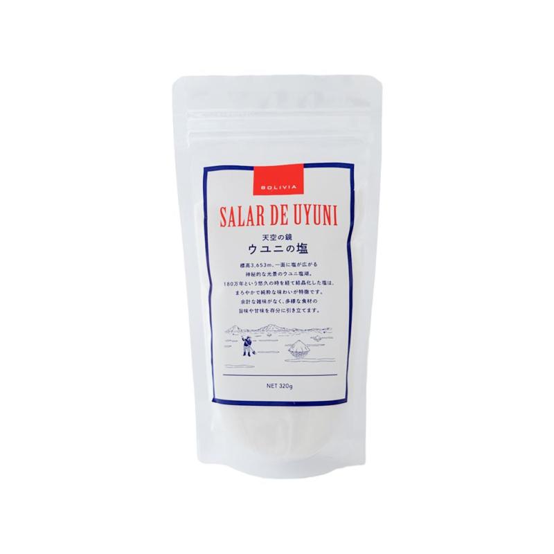 大自然の神秘的な景色の源、アンデス山脈に囲まれたウユニ塩湖。 ウユニ塩湖は、一面塩だけが広がる湖です。その塩の塊をそのまま砕き、袋に詰めました。結晶は、バランスの取れた大変珍しいピラミッド型。 舌の上ですっと溶け、適度な塩味と、はっきりとした旨味と甘み。素材の味を引き立たせ、魚介類の塩焼き、グリル野菜、脂肪分の多い豚肉をしっかり焼いて食べるときにおすすめ。 仕上がりの味に深みを増すこの塩を、生活の一部としてお使いください。 雑味のない塩味がどんな素材にも合わせやすく、グロッサリーに常備しておきたいおすすめのお塩です。 ≪ウユニ湖塩の特徴≫ ◎バランスが良い 料理の味を引き立てるクリアな塩味と、ミネラルがほどよく含まれたまろやかで複雑な味わいを兼ね備えています。 ◎ピラミッド型の小さな結晶 ミネラルが豊富でありながら、塩の粒は比較的小さく、使いやすさに優れています。珍しいピラミッド型の結晶が、バランスの取れた味わいを舌に伝えます。