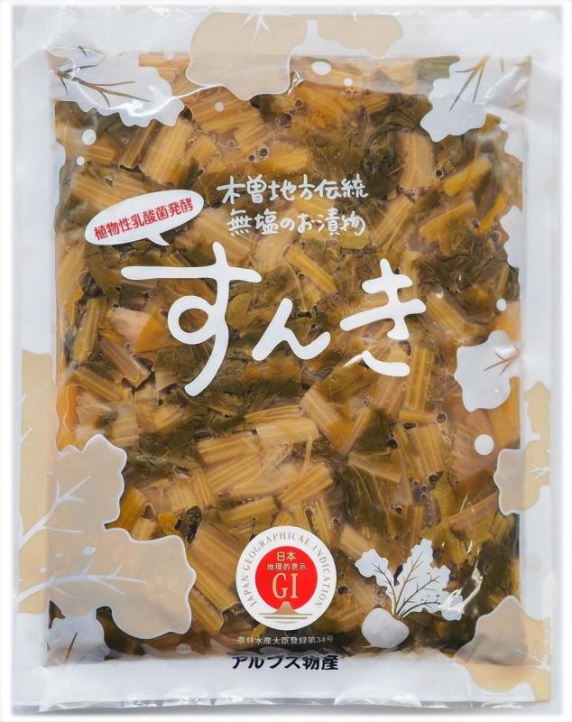 すんき 木曽地方伝統の無塩の発酵食品です。乳酸菌の発酵が生み出した独特の酸味が特徴で、 植物性乳酸菌が豊富な健康食品として注目されています。 【商品の分類】 漬物・佃煮/漬物 【内容量】 200g 【保存温度帯】 冷蔵 【賞味期限】 製造日から120日 【業務用・小売用】 小売用 【希望する販路先】 百貨店 上質スーパー 食品・酒類卸(国内) 業務用卸 その他食品商社 食品を扱う通販 【希望小売価格】 480円(税抜)