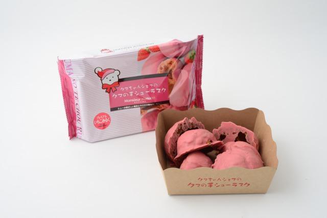 クマの手シューラスクプレミアムいちごみるく シュー生地をラスクに焼き上げました。シュー皮をタテ切りにするという、常識を覆した発想から誕生しました。シュー生地の上に薄いクッキー生地をのせて焼くことで香ばしさと風味が一段とアップ!独自にブレンドした甘酸っぱいいちご味のチョコをたっぷりかけました。 【商品の分類】 菓子/焼き菓子・油菓子 【内容量】 6個 【保存温度帯】 常温 【賞味期限】 製造日から300日 【業務用・小売用】 小売用 【希望する販路先】 百貨店 スーパー 上質スーパー 生協 その他小売 食品・酒類卸(国内) 業務用卸 その他食品商社 【希望小売価格】 780円(税抜)