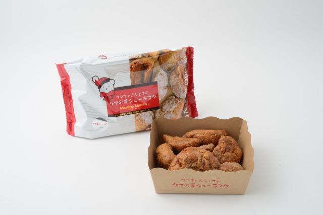 クマの手シューラスクプレーン シュー生地をラスクに焼き上げました。シュー皮をタテ切りにするという、常識を覆した発想から誕生しました。シュー生地の上に薄いクッキー生地をのせて焼くことで香ばしさと風味が一段とアップ! 【商品の分類】 菓子/焼き菓子・油菓子 【内容量】 8個 【保存温度帯】 常温 【賞味期限】 製造日から300日 【業務用・小売用】 小売用 【希望する販路先】 百貨店 スーパー 上質スーパー 生協 その他小売 その他食品商社 【希望小売価格】 580円(税抜)