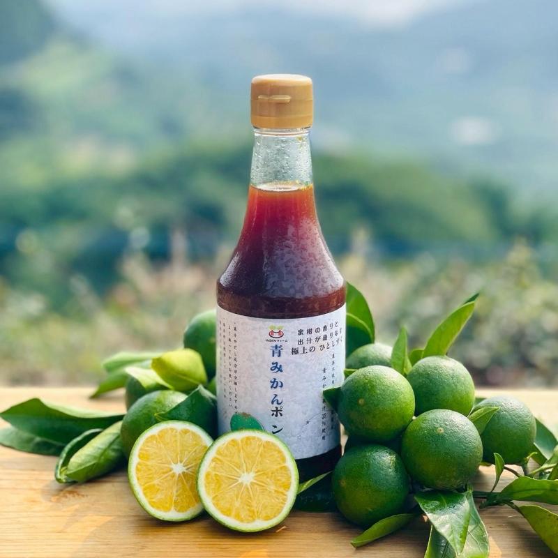 青みかんポン酢は、爽やかな青みかんの風味を生かしたこだわりの逸品です!昔ながらの二度搾りをされる地元浜松の醤油屋さん「加藤醤油」さんの醤油を使ったコラボ商品です!当園のみかん圃場では、栽培期間中:化学農薬、化学肥料、除草剤不使用。自然に寄り添いながら、大切に育てたみかんを使用しています。