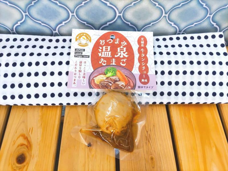 東北おつまみ温泉たまご(宮城県牛タンシチュー風味) 温泉たまご(ゆで卵)をご当地料理をイメージした味付けの煮卵に仕上げました。開けてそのまま食べられますので、地酒やクラフトビールと共に宿泊施設や移動中のおつまみにどうぞ。レトルト殺菌をしておりますので、賞味期限が製造より18カ月と長く、場所を選ばず販売可能です。 【商品の分類】 その他食品/その他食品 【内容量】 1個 【保存温度帯】 常温 【賞味期限】 製造日から547日 【消費期限】 D+547日 【業務用・小売用】 小売用 【希望する販路先】 その他小売 食品・酒類卸(国内) 【希望小売価格】 324円(税抜)