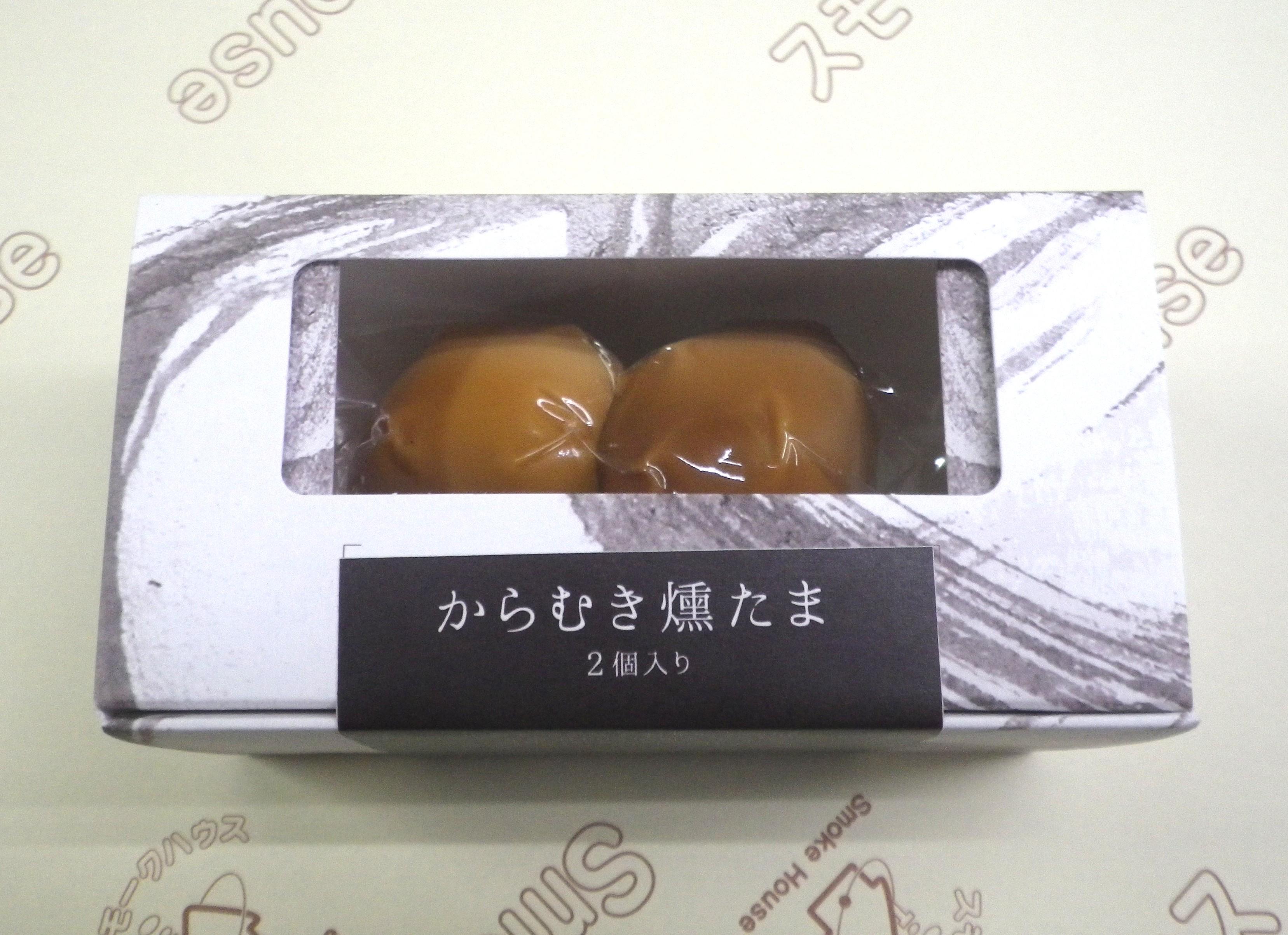 ・伯方の塩と利尻昆布で味付けし、茹で上げたこだわり卵のカラをむき、くんせいをかけました。 ・カラをむいた卵にくんせいをかけているので白身の表面がソーセージの皮が付いているような食感です。こだわり卵の滑らかな黄身が特徴のくんせい卵です。