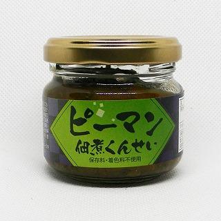 福島県産ピーマンがゴロゴロ入った甘辛い佃煮です。 ご飯のお供や、田楽(豆腐や野菜、こんにゃく等)のトッピングにもオススメです。 ピーマン佃煮を最終工程でくんせいをかけてから梱包しています。味わい深い佃煮の旨みとくんせいが香る逸品です。