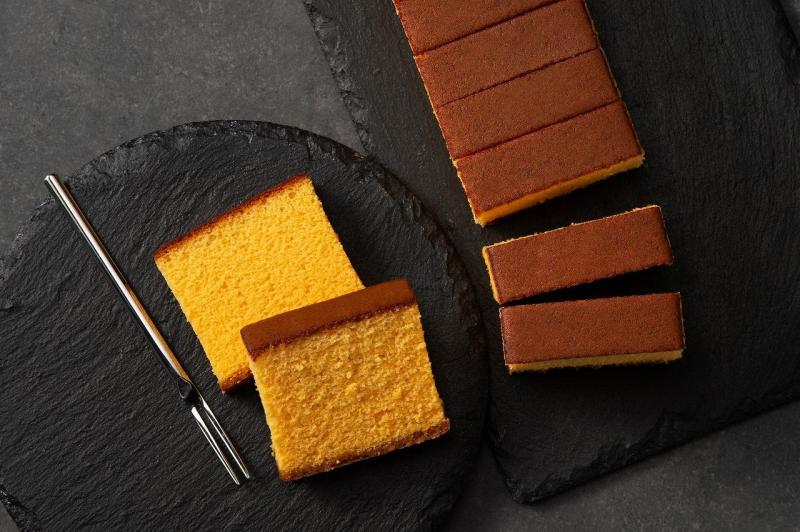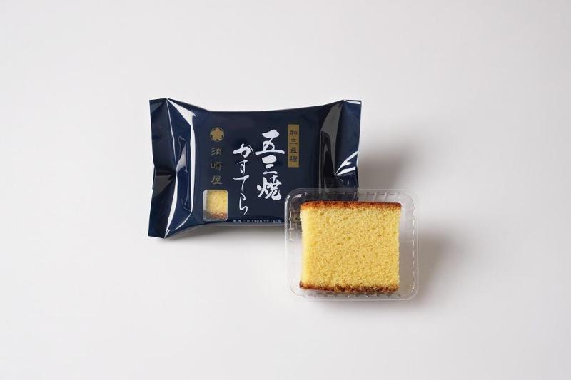 創業1867年の須崎屋は、卵黄の風味豊かな「五三焼かすてら」にこだわり、地元の旨味の強いブランド卵の卵黄に加えコクのある鳥骨鶏卵でコクを加え、和三盆糖のほか厳選した4種の甘味で上品な後味にこだわりました。一枚ずつ仕込み、一枚ずつ丁寧に焼き上げる伝統製法によるどっしり、しっとりとした高級かすてらです。
