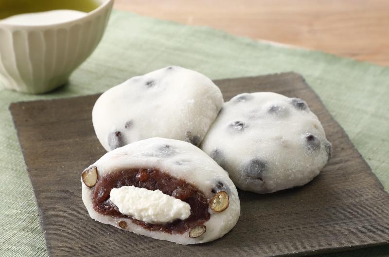 伊豆大島の伝統海塩「海の精」の塩と大粒の赤えんどう豆を混ぜこんだもっちりとした食感の生地で、北海道十勝の小豆を使用した粒あんとくちどけのよいクリームを巻き上げました。上質な塩を使うことで砂糖の甘さがよりまろやかで上品な味わいに仕上がっております。あらかじめ切れ目が入っていますので、そのまま5つに切り分けてお召し上がりいただけます。