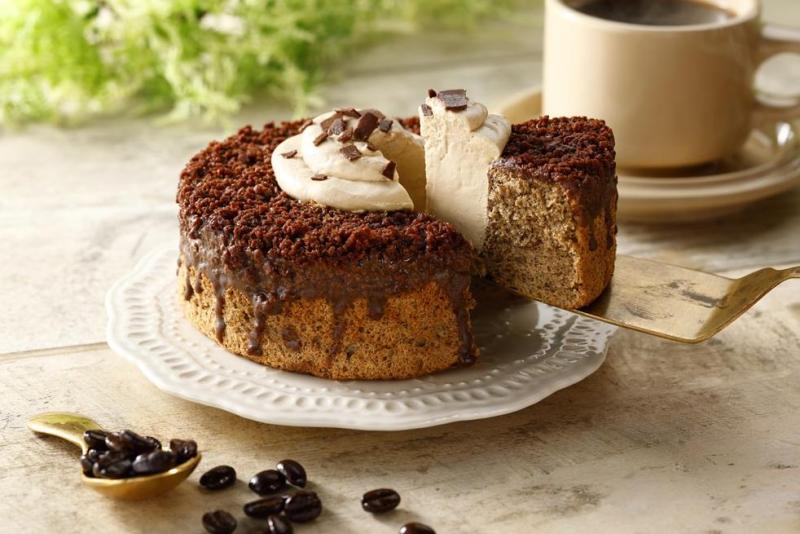 猿田彦珈琲様より供給していただく粉末コーヒーとコーヒーリキッドを、生地・クリーム・グラサージュチョコに使用。スペシャルティコーヒーの深いコクがあとを引く、大人の味わいのシフォンケーキです。中心にたっぷりと絞った自家製コーヒーカスタードクリームは、生地・チョコレートとの相性抜群で、味もボリュームも満足できるケーキに仕上げました。