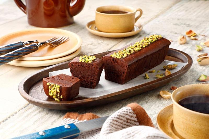 芳醇な香りと酸味のバランスの取れたマダガスカルカカオを低温でじっくりと焼き上げることで、カカオの風味をしっかりと残した濃厚なチョコレートケーキに仕上げました。天面にはナッツの女王とも呼ばれるピスタチオを散りばめて、優しい甘さのコクと彩りを加えました。電子レンジで10~20秒温めてもおいしくお召し上がりいただけます。