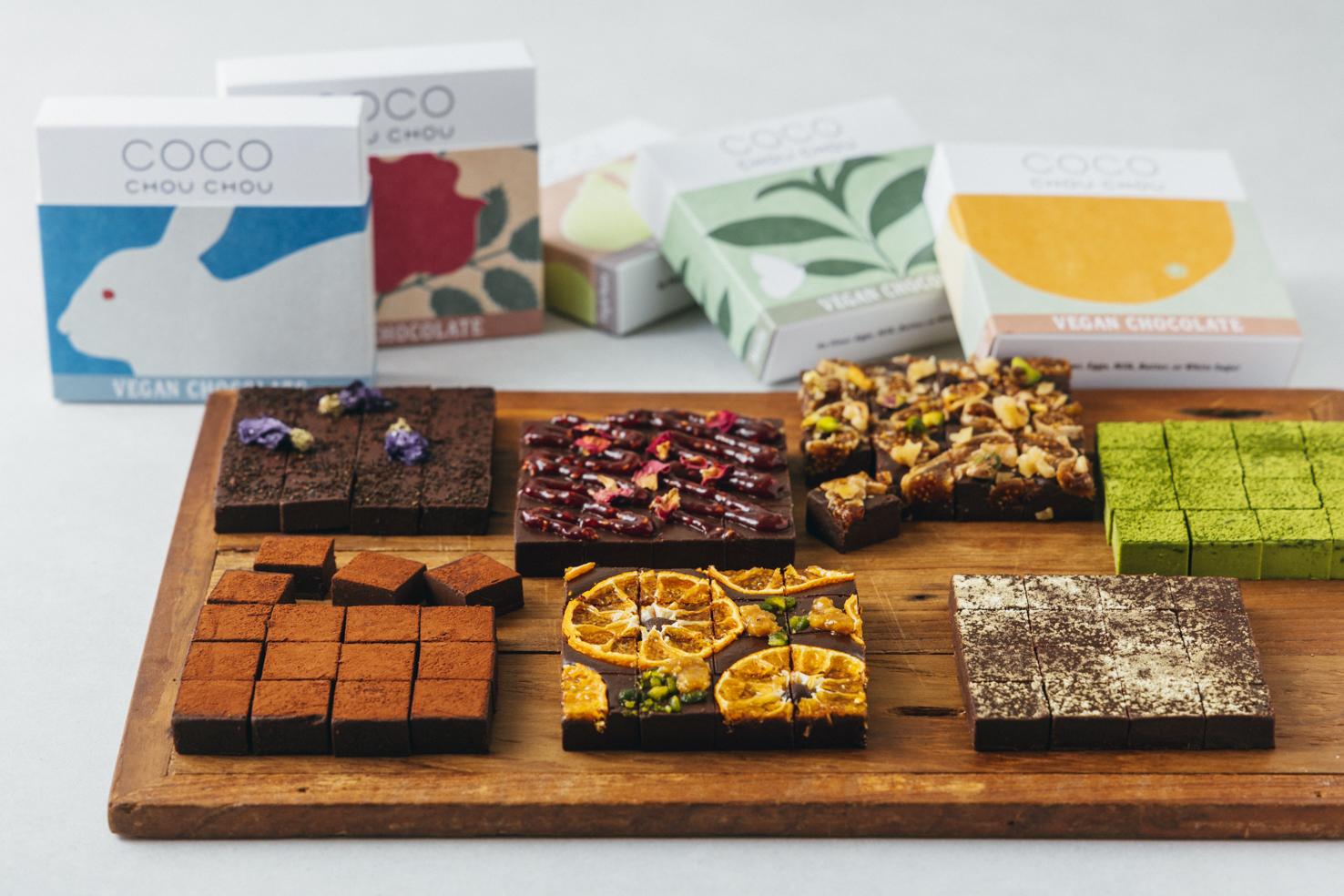 乳化剤・乳製品・白砂糖不使用、動物性食材を使わずに作った体に優しいヴィーガン生チョコレート。 カシューナッツで作る植物性ミルクのしっかり濃厚で滑らかな口どけをお楽しみください。 プレーンの他、マンダリンオレンジ、ジンジャー、抹茶、イチジク&ナッツ、ラズベリー&ローズ、アールグレイの 合計7種のフレーバーをご用意しております
