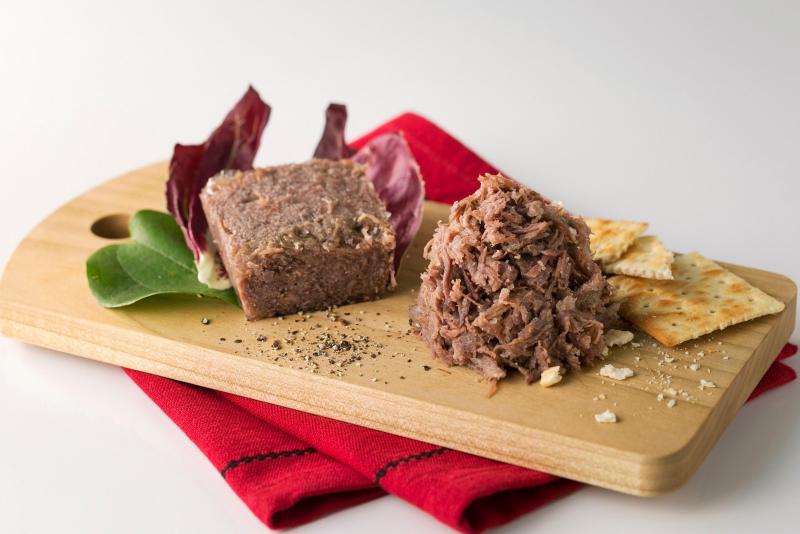 和牛の中でも1%に満たない日本固有の希少種『岩手短角和牛』で造った日本初の牛肉の熟成生ハムです。『セシーナ』とはスペイン北部のレオン地方を発祥とする牛肉の生ハムのことで、塩漬けした肉を1年以上じっくり乾燥熟成して造ります。 肉のふがねは本場スペインで技術を学び、短角和牛の旬の味を封じ込めていつでも楽しめる食材として唯一無二のセシーナを誕生させました。塩漬けに使う塩は、岩手の沿岸部で造られる天然の海塩『のだ塩』。肉も塩もすべて地元の素材で造られるセシーナは、熟成された肉の旨味とチーズのような芳潤な香りが特徴。噛みしめるごとに岩手の風土を感じることができる、肉のふがねの代表作です。