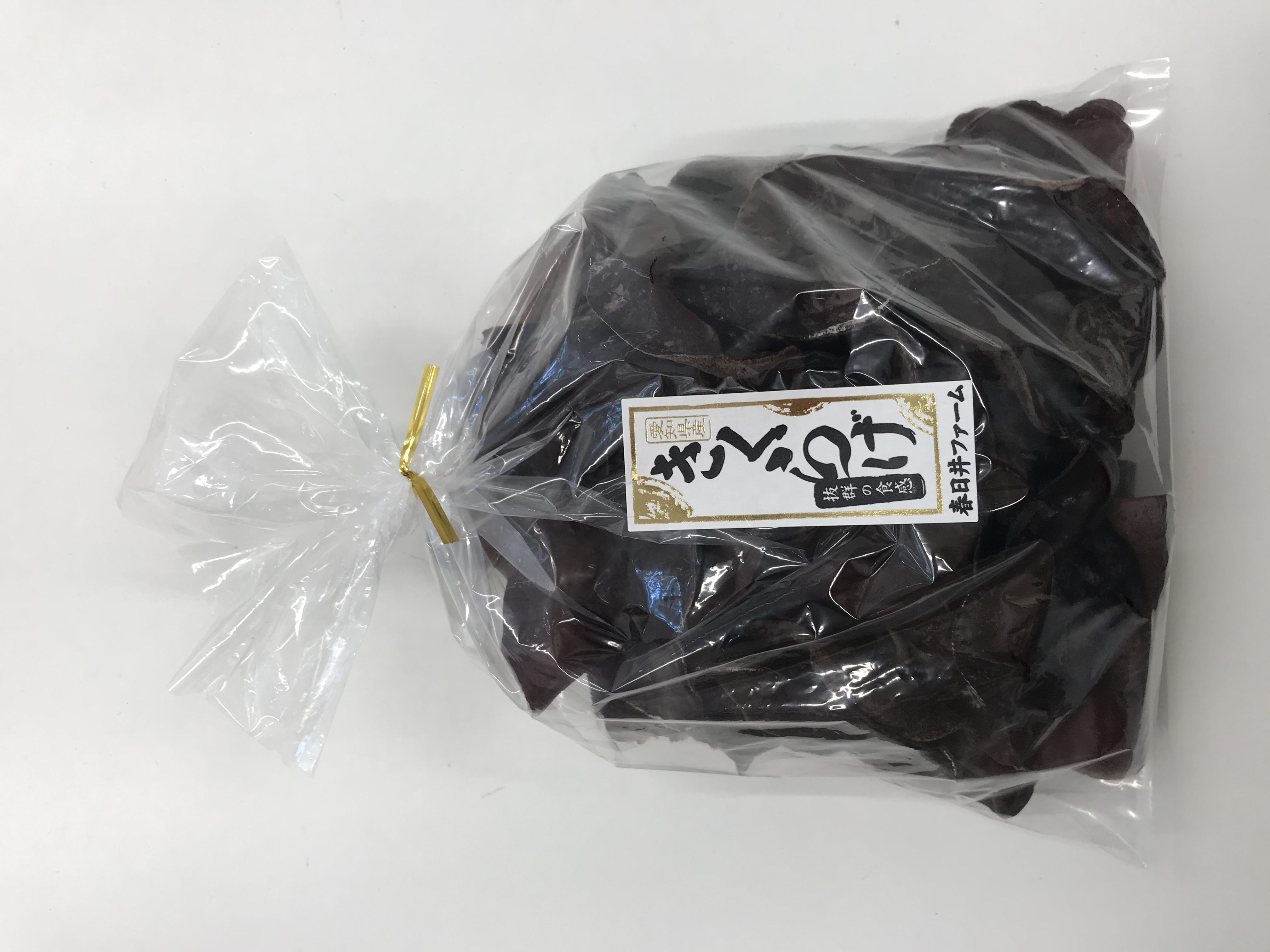 栽培期間農薬不使用の国産(愛知県産)乾燥きくらげ。日本の乾燥きくらげは、海外産よりもゼラチン質を柔らかい食感。乾燥きくらげの大きさは、ピンポン玉サイズのものから手のひら程度の大きさまで様々。水戻しすると約8倍の大きさになります。