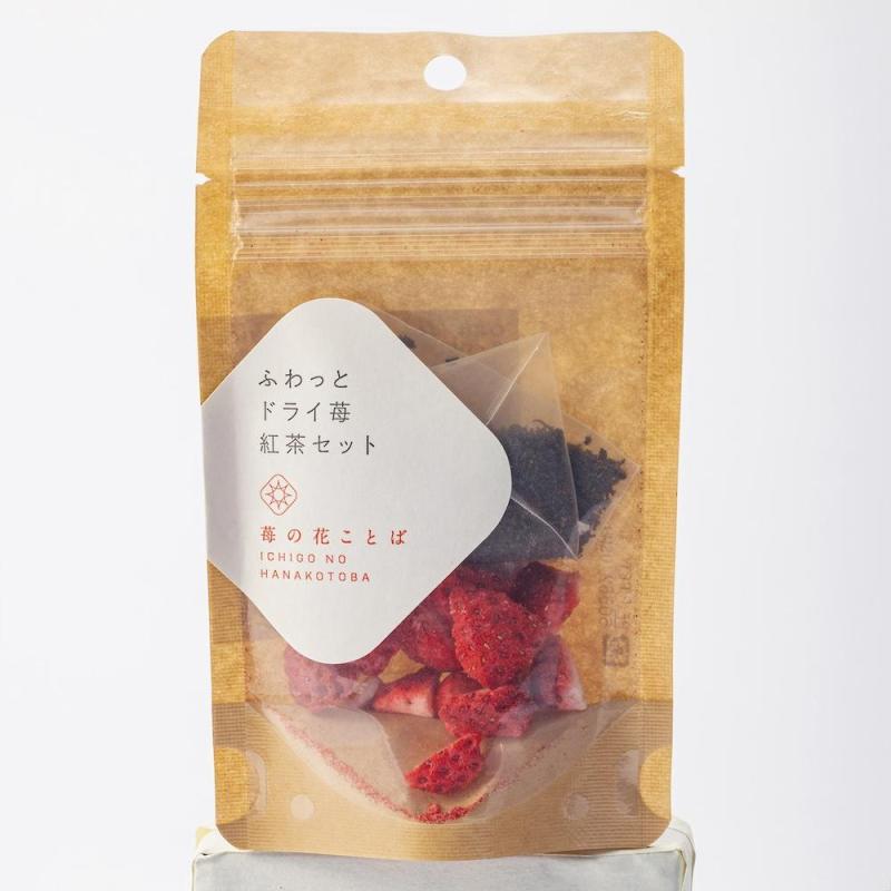 安心安全の為に添加物不使用で仕上げたふわっと越後姫と紅茶のニルギリの紅茶セット。新潟県内でほとんど消費するため見外ではほとんで出回らない新潟県が産み出した品種越後姫を100%使用。一般的な管理では難しいとされる定植後化学農薬を使用せずに栽培。また量よりも質も求める1つ芽管理を行うことで高品質ないちごを栽培。そのいちごを収穫した形そのままフリーズドライに仕上げました。そのフリーズドライいちごとフルーツの酸味と相性の良い紅茶のニルギリをセットにしました。香料などを使用していません。ホット一息つく瞬間に味わってもらいたい大人向けのいちご紅茶です。また大人の女性が好きなシンプルなデザインに仕上げました。