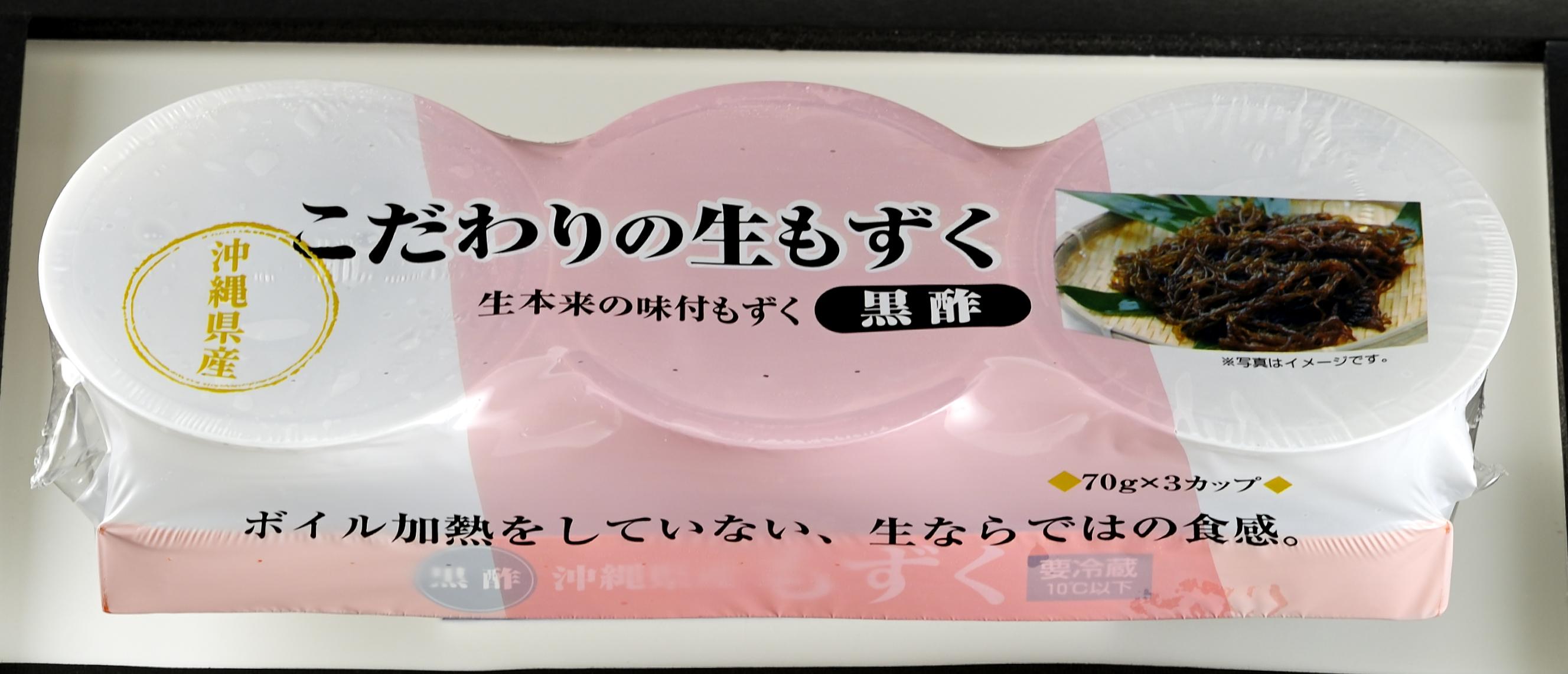 現在流通している味付もずくは、加熱処理などで殺菌工程を行っているメーカーがほとんどです。加熱することにより歩留まりが向上し、原価を抑えることができますが、もずく本来の風味や食感が大きく損なわれてしまいます。また、もずくの特性であるフコキサンチンなどが流出してしまいます。 弊社では唯一無二の製法により加熱せずに加工できる技術を開発居ました。こだわりの味付もずくをご賞味下さい。加熱していない食感脳良いもずくを使用しています
