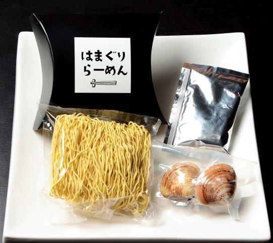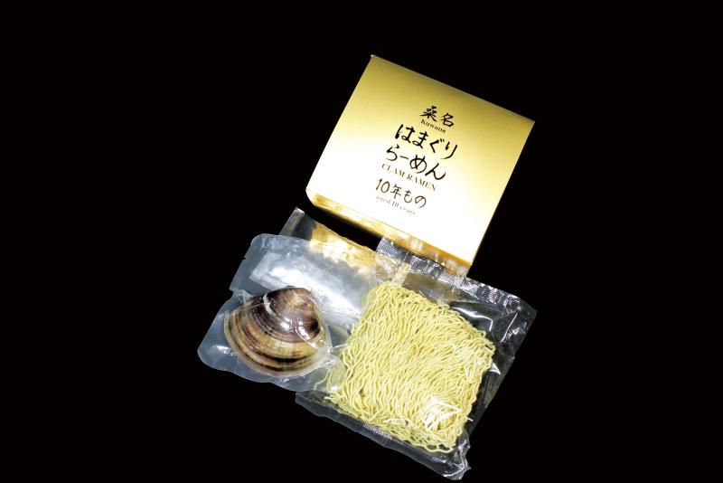 三重の池で蓄養したはまぐり、活の出荷前の工程で、水揚げ、出荷、選別をした際に出た割れた はまぐり、規格外のはまぐりを茹で、身を酵素分解して、ハマグリエキスにしたもので作りました。濃厚なはまぐりのエキスが入ったスープで、麺は細麺。現在 スーパー、百貨店の物産展で販売しておりました。大変反響がよく、著名人のブログでも紹介して頂きました。