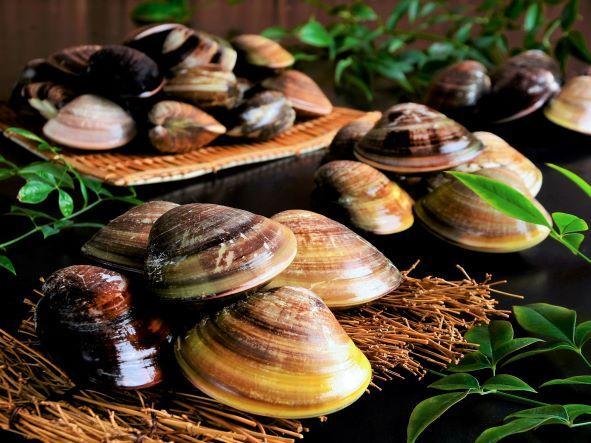 桑名の地はまぐりは、希少価値の高い「ヤマトハマグリ」という日本古来種で、穏やかな内湾の汽水域で育つことから殻が薄く、身はぷっくりとして柔らか。 ほどよい塩気とたっぷりのうまみを含み、国内流通の9割を占める輸入はまぐりとの違いは歴然で、「桑名のはまぐりを食べたらほかのものは食べられない」といわれるほどです。