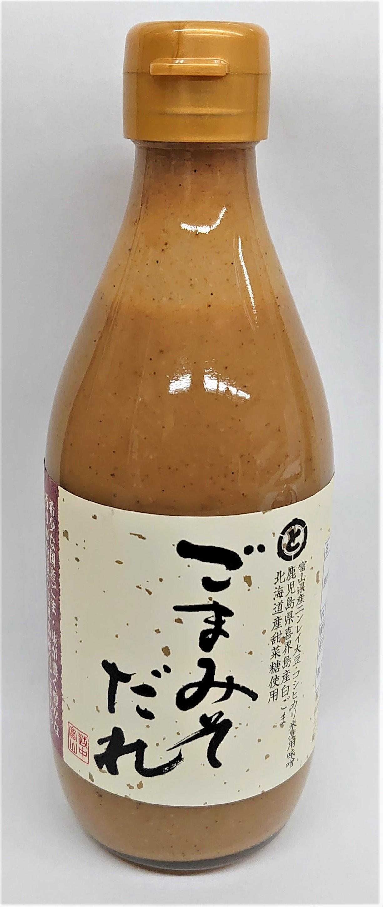 希少な「鹿児島県喜界島産ごま」を贅沢に使用したごまみそだれです。白ごまを製造直前に擂ることにより最大限香りを引き出しました。味のベースとなる味噌は、富山県産コシヒカリ米・富山県産エンレイ大豆を原料に仕込まれた旨みと甘みのバランスが良い糀味噌です。北陸古来の調味料でもあるいか魚醤、北海道産ほたて粉末、焼津産かつお節を使用することによりまろやかで味わい深いたれに仕上げました。