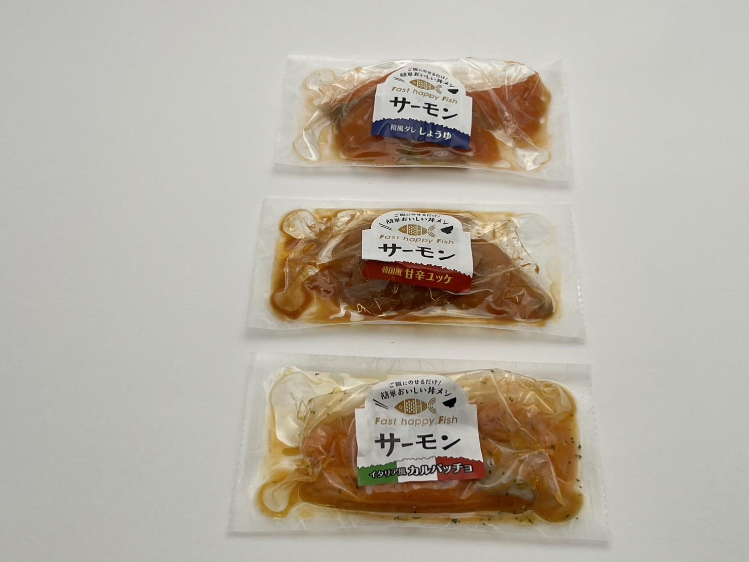 焼津港で水揚げされた鮮度の良い鮪やサーモンを3種類のこだわりのたれで漬け込んだ便利で簡単料理の漬丼シリーズ。-18℃で冷凍保管が長期間でき食べたいときにすぐに解凍しお召し上がることができます。解凍方法は前日に冷蔵に移してじっくり解凍もよし、忙しい時は流水解凍10分でお子様でも簡単に解凍できます。漬丼でご飯にのせて食べるのもよし、手毬寿司、サラダやパスタ、ワインの1品にも合います。