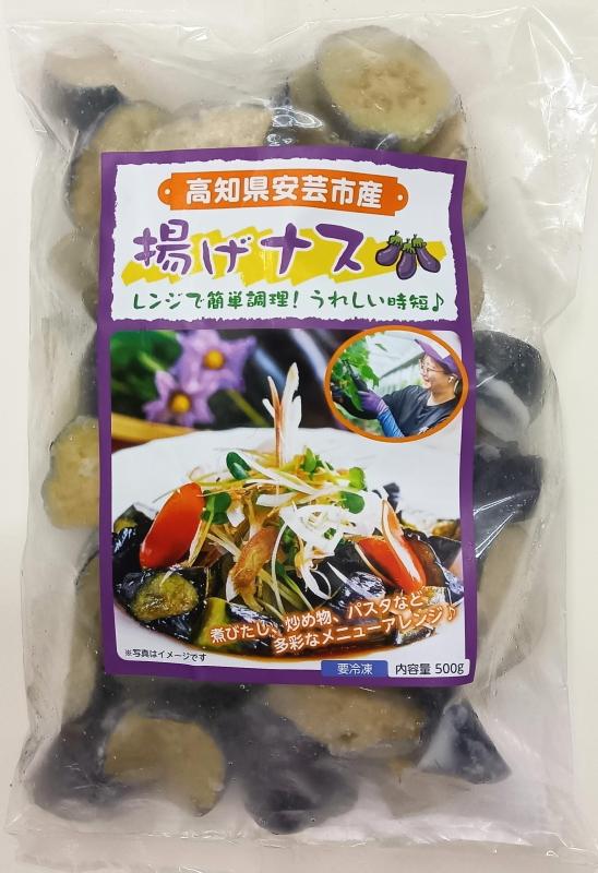 高知県安芸市で自社生産するナスを、障がい者施設で加工。 収穫、洗浄、油調、急速冷凍、包装、すべて手作業です。 時短、ロス・廃棄ゼロ。ヘルシーなキャノーラで油調した、SDGsと農福連携を目指した商品です。