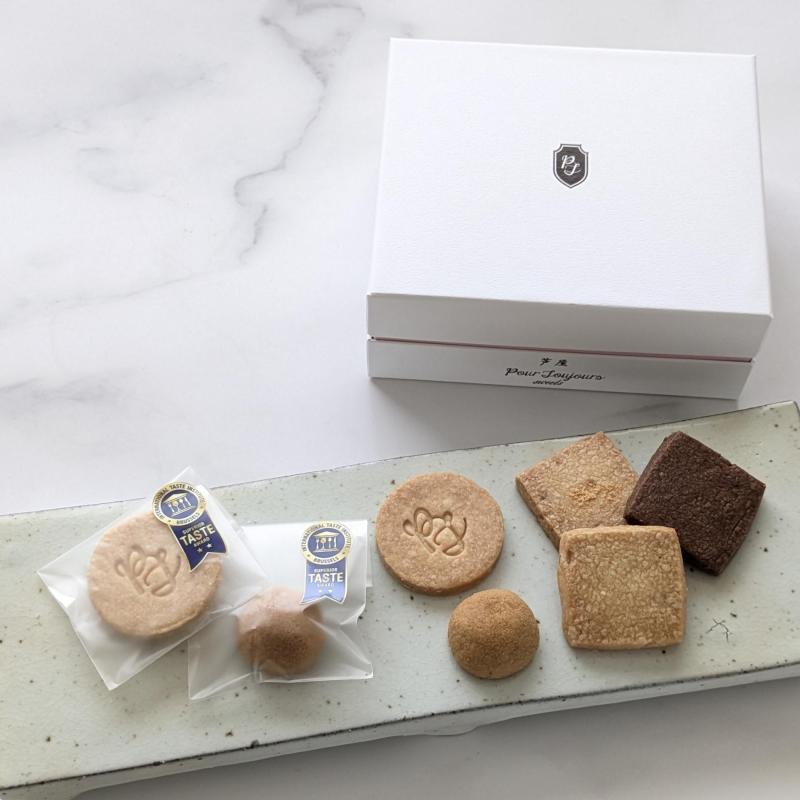 国際審査機関にて優秀味覚賞を授賞。豆乳クリームバターと太白胡麻油を使った軽くてサクサク食感のクッキー。「ソイ・プレーン」「ソイ・ショコラ」「Love石・ソイ(きなこのスノーボール)」「ファーストスウィーツ・ソイ(米粉のクッキー)」5種10枚の詰合せ。コレステロール&トランス脂肪酸オフ、ごま油の抗酸化作用も嬉しい、ヘルシーなのに贅沢な味わいです。