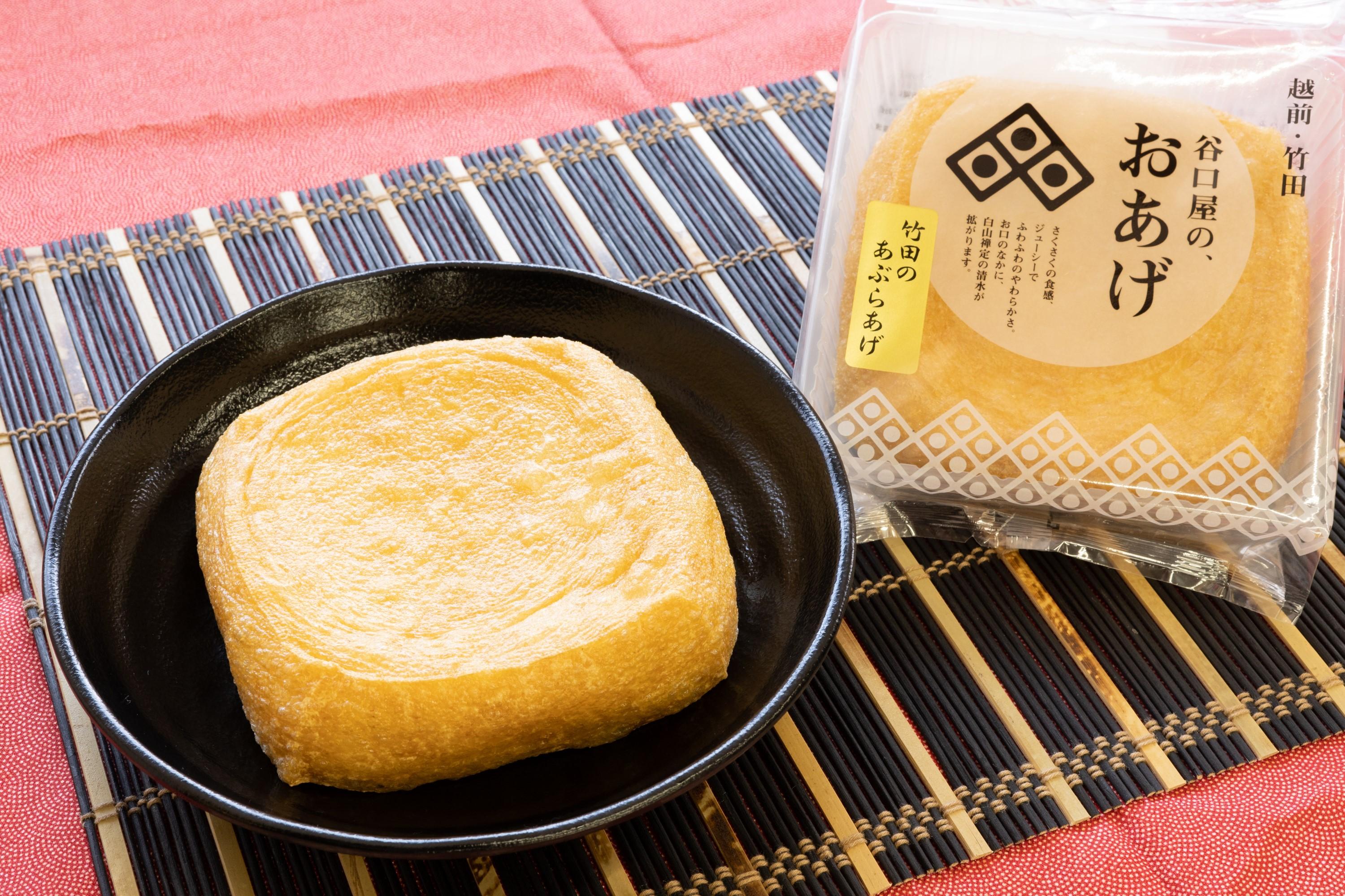 1925年の創業から100周年を迎えた老舗豆腐店 福井の新名物である巨大な油揚げの製造、卸、直販、飲食を行っている。 材料にとことんこだわっており、国産大豆はもちろんのこと 国内流通量0.2%の国産菜種油を使用し、油揚げ専門の職人が約1時間かけて1つ1つ手作業で製造しています。 福井の文化や歴史がつないだ、県民のソウルフードである巨大油揚げをぜひご覧ください。 油揚げをおかずにご飯が食べられるという特殊な文化をぜひ日本全国、世界各国の方に知ってもらいたい。