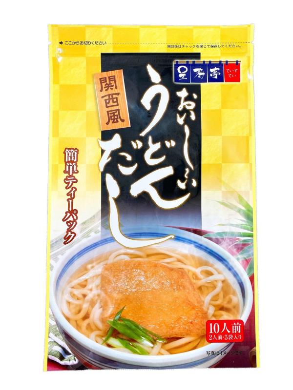 厳選した原材料をふんだんに使用(かつおの節:鹿児島県、うるめ鰯・さばの節:熊本県、昆布:北海道)し、他社だしパックの追随を許さない配合量にて 仕上げております。 また、ティーパック内に食塩や砂糖、粉末醤油などもブレンドしており、お湯で煮出すだけでそのまま「うどんだし」として召し上がっていただけます。