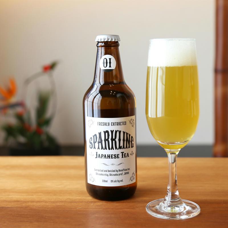 静岡県牧之原産の上等な深蒸し「一番茶葉」を独自の製法で丁寧に抽出し、炭酸とバランスよく混ぜた発泡性のスパークリングティー(ノンアルコール)です。慣れ親しんだお茶とは一味違い、爽快な喉越しや清涼感と、ビールのような香ばしい味わいが特徴です。上質な一番摘み茶葉をふんだんに使用しており、「深蒸し茶葉」の香りと甘味が広がります。