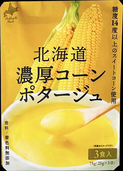 添加物を一切使用せず、北海道産の糖度14度以上の朝採れとうもろこしをたっぷり使用したコーンポタージュ。 1食あたりのとうもろこしの量を、当社既存製品の2倍増量し、とうもろこし本来の美味しさにこだわりました。調味料(アミノ酸等)、香料、着色料、保存料等の添加物は一切不使用で、お湯を注いで混ぜるだけで、濃厚で、とうもろこしの美味しさがストレートに伝わるポタージュスープです。