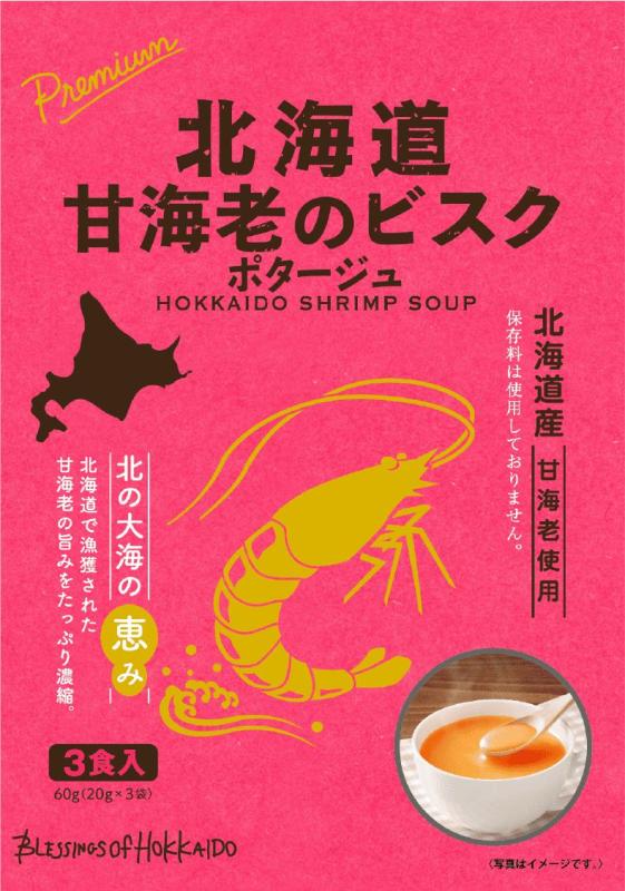 北海道産の甘海老を頭丸ごと使用したビスクポタージュ。 保存料は不使用で、旨みの強い北海道産の甘海老を使用しました。 海老の旨味とトマトの酸味がクセになる濃厚なビスクポタージュ。 ジャパンフードセレクションでも金賞W受賞した、高品質なポタージュスープを作り上げているポタージュ専 門会社が、食味(酸味・苦味・旨味・甘味・塩味)にこだわって作った傑作な一品。 スープやパスタソース、ドリアなどにも応用可能な、夕食向けのポタージュスープです。