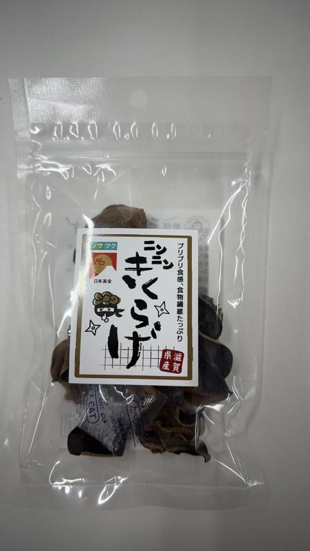 地域の福祉事業所と協力し、売り手良し、買い手良し、世間良しの「三方良し」の実現を目指し生産されたキクラゲです。 国内産菌床から生まれたキクラゲは高品質でプリプリコリコリ食べごたえのある食感となっています。 また、「食べる漢方」と呼ばれるくらい栄養価が豊富で、食物繊維や鉄分が豊富に含まれています。ビタミンDの含有量はきのこ類でNo.1を誇り、免疫力の向上やカルシウム吸収のサポートなどの効果があると言われています。
