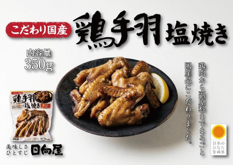 こだわり国産鶏手羽塩焼き 鶏肉から副原料まで国産品にこだわっています。シンプルな味付けながら、熟成された親鶏の旨みと相まって、味わいのある一品に仕上がりました。独自製法の強力な炎で一気に焼き上げています。おつまみ、おかずに最適です。 【商品の分類】 加工肉類/その他加工肉類 【内容量】 350g 【保存温度帯】 常温 【賞味期限】 製造日から365日 【業務用・小売用】 小売用 【希望する販路先】 百貨店 スーパー 上質スーパー 生協 その他小売 食品・酒類卸(国内) 食品を扱う通販 外食チェーン レストラン・カフェ 惣菜・弁当・ケータリング 【希望小売価格】 648円(税抜)