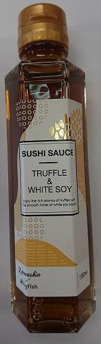 SUSHI SAUCE TRUFFLE&WHITE SOY フランス産黒トリュフの気高い香りと白しょうゆの芳醇な香りの重なった新感覚の醤油です。 【商品の分類】 調味料/醤油 【内容量】 150ml 【保存温度帯】 常温 【賞味期限】 製造日から365日 【業務用・小売用】 小売用 【希望する販路先】 百貨店 スーパー 上質スーパー 食品・酒類卸(国内) 食品・酒類卸(海外) 【希望小売価格】 830円(税抜)