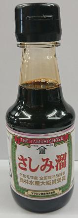 さしみ溜り 150ml 甘さと旨味にこだわったたまり醤油です。 【商品の分類】 調味料/醤油 【内容量】 150ml 【保存温度帯】 常温 【賞味期限】 製造日から365日 【業務用・小売用】 小売用 【希望する販路先】 百貨店 スーパー 上質スーパー CVS・ドラッグストア 生協 食品・酒類卸(国内) 食品・酒類卸(海外) 業務用卸 その他食品商社 食品加工・食品製造 【希望小売価格】 450円(税抜)