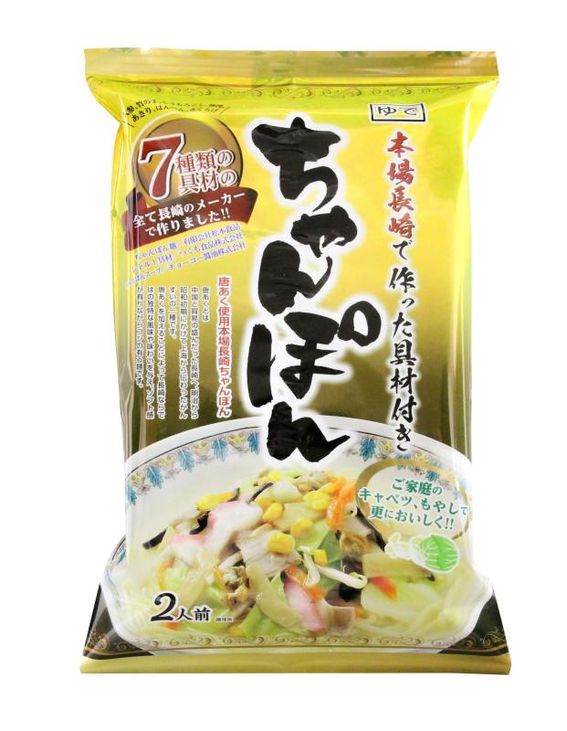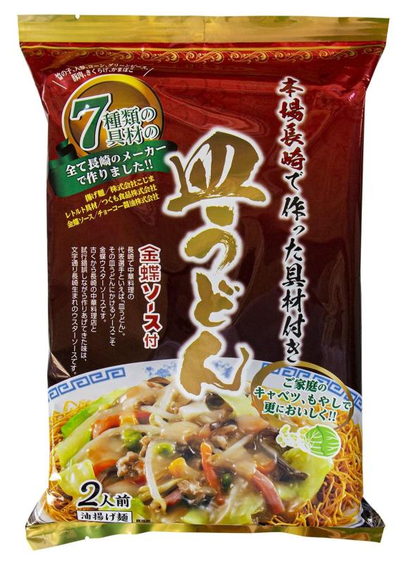 幸せな食卓を提供する食品会社をイメージし、それぞれの円が「幸せな家族」であったり、「人と人」 「生産者と消費者」 「自然と人間」 「企業と企業」など様々な「縁(えん)」として成立するようにこの会社を作りました。長崎を代表するちゃんぽん・皿うどんを含め、麺類及びその他食品の販売を行っております。