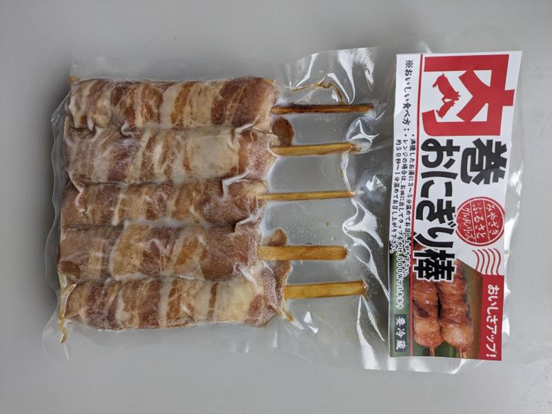 肉巻おにぎり棒 宮崎名物肉巻おにぎりを平串に刺したスティック状の肉巻です。新しくタレをリニューアルしてにんにくと生姜をきかせて更に美味しくなりました。 【商品の分類】 惣菜類/その他惣菜 【内容量】 250g 【保存温度帯】 冷凍 【賞味期限】 製造日から180日 【業務用・小売用】 小売用 【希望する販路先】 スーパー 生協 食品を扱う通販 【希望小売価格】 オープン価格