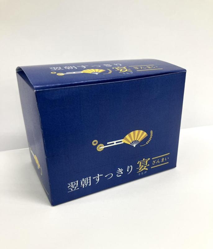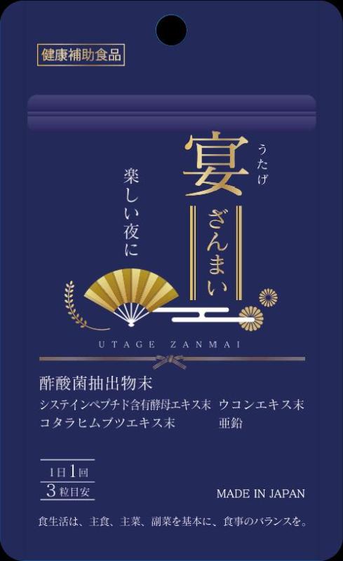 宴ざんまいは、飲み会を楽しんだ後の翌朝を爽快に迎えるために開発されたサプリメント。 酢酸菌抽出物末はアルコールは胃と小腸で吸収され、肝臓でアルコール脱水素酵素とアセトアルデヒド脱水素酵素によってアセトアルデヒドと酢酸に分解されます。アルコールを代謝できなかった場合に二日酔いとなります。酢酸菌抽出物末にはこの2つの酵素が含まれるため、直接的にアルコールの代謝を促します。
