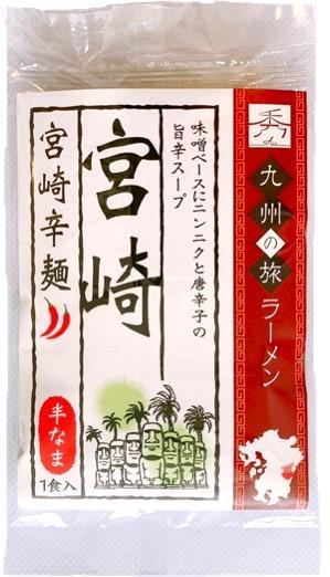 半生中太麺と味噌ベースにニンニクのきいた旨辛スープの宮崎辛麺 九州の旅ラーメンシリーズ(久留米、博多長浜、博多、熊本、鹿児島、長崎、佐賀、大分、宮崎)の全9種類の味を取り揃えております。